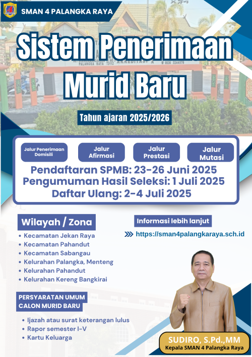 PENERIMAAN MURID BARU SMA NEGERI 4 PALANGKA RAYA TAHUN AJARAN 2025/2026
